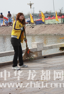 2010年4月2日,我在淮陽(yáng)太昊陵廟會(huì)上,拍到了一個(gè)女孩與環(huán)衛(wèi)工人一起勞動(dòng)的畫(huà)面,她不是專(zhuān)業(yè)的環(huán)衛(wèi)工人,但卻做起了太昊陵的“美容師”。