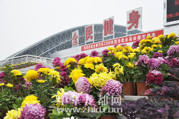 周口市體育場(chǎng)觀眾入口處鮮花錦簇。