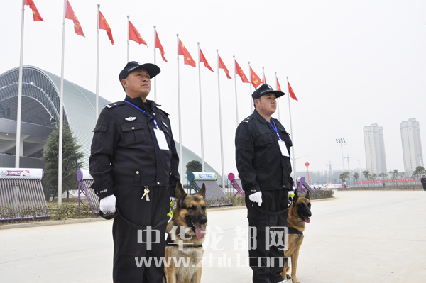 正在巡邏的警犬,承擔(dān)第二次運(yùn)動(dòng)會(huì)的安保工作。