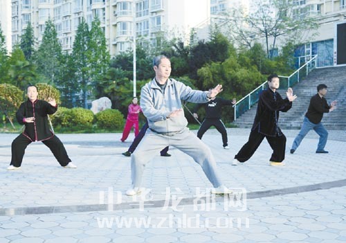 ??? 85歲高齡的張安詳老人練習(xí)太極劍三十二式。老人耳聰目明,平時(shí)喜歡太極劍、太極扇等運(yùn)動(dòng)項(xiàng)目。(本報(bào)記者 攝)