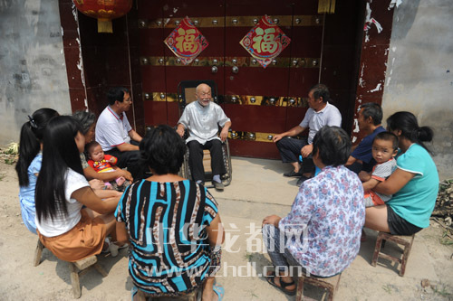 ????本報(bào)訊 全國上下慶??箲?zhàn)勝利70周年之際,96歲的鄲城籍抗戰(zhàn)老兵朱好德每天都關(guān)注各大電視臺(tái)播放的抗戰(zhàn)特別節(jié)目。由于1938年正月的黃河保衛(wèi)戰(zhàn)是老人家打得最過癮、打得最得意的一場戰(zhàn)役,8月26日,依照朱好德的意愿,朱家上下十幾口歡聚一堂,聽他講述炮火紛飛年代中華兒女血灑疆場殺日寇的故事(如圖)。