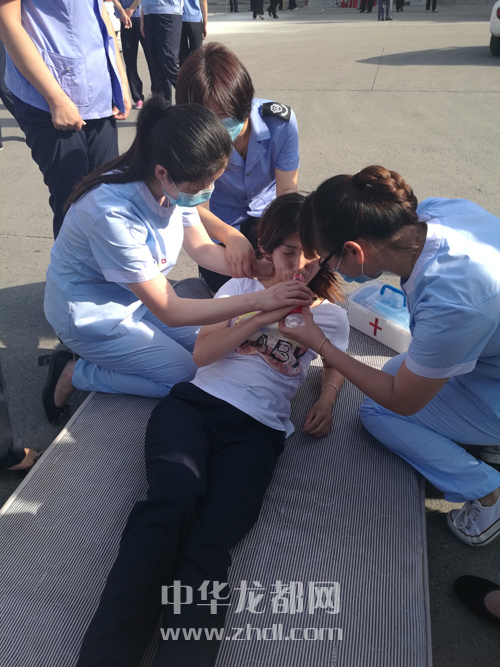 ????在模擬車(chē)站大廳發(fā)生火災(zāi)的演練中,車(chē)站值班站長(zhǎng)第一時(shí)間撥通119、120求救,并組織工作人員幫助旅客有序撤離。車(chē)站醫(yī)療搶救組對(duì)撤離到安全地帶的受傷旅客進(jìn)行施救(如圖二)。大廳內(nèi)人員全部撤離后,救援人員手持滅火器迅速組織滅火(如圖三)。