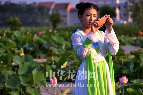 ????淮陽龍湖國家濕地公園荷花品種眾多、花期長達(dá)3個月,每逢周末,游人紛至沓來。日前,一群來自周口市區(qū)的古裝秀愛好者在這里撫琴弄簫、漫步花叢,仿佛穿越時空、從唐詩宋詞中走出的仙子,如夢如幻,宛若仙境。