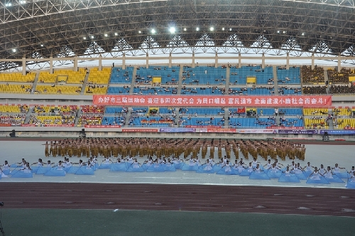 ????當(dāng)日16時(shí),國旗方陣、會(huì)旗方陣、彩旗隊(duì)、裁判員、運(yùn)動(dòng)員依次入場,一個(gè)個(gè)意氣風(fēng)發(fā)的團(tuán)隊(duì)引來現(xiàn)場觀眾陣陣掌聲和歡呼聲:周口川匯區(qū)代表團(tuán)首先入場,他們步伐矯健,英姿勃發(fā);市委辦公室代表團(tuán)精神抖擻,意氣風(fēng)發(fā);市委宣傳部代表團(tuán)邁著矯健的步伐走向主席臺(tái)……