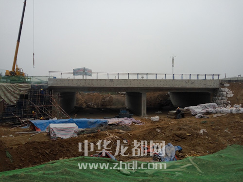 ????一橋,是互通立交的主體。整個立交橋凈高4.9米,有兩個橋洞,中間由寬1米的墻隔開,每個橋洞凈寬16米,設置單向雙車道和兩米寬的人行道。加上立交橋兩側(cè)各1米的墻寬,整個立交橋?qū)?5米。同時,立交橋位置向北的周口大道兩側(cè)將增設寬2.5米的人行道。