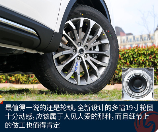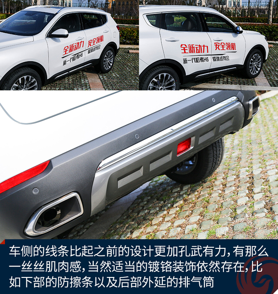 開眼角的設計雖然已經(jīng)有一陣子了,但是哈弗H6也是剛剛用上,而且頭燈的設計很簡潔,但是與六邊形的前進氣格柵搭配的感覺剛剛好,在視覺上帶來了十分不錯的沖擊力。車側(cè)的線條比起之前的設計更加孔武有力,有那么一絲絲肌肉感,當然適當?shù)腻冦t裝飾依然存在,比如下部的防擦條以及后部外延的排氣筒。最值得一說的還是輪轂,全新設計的多幅19寸輪圈十分動感,應該屬于人見人愛的那種,而且細節(jié)上的做工也值得肯定。