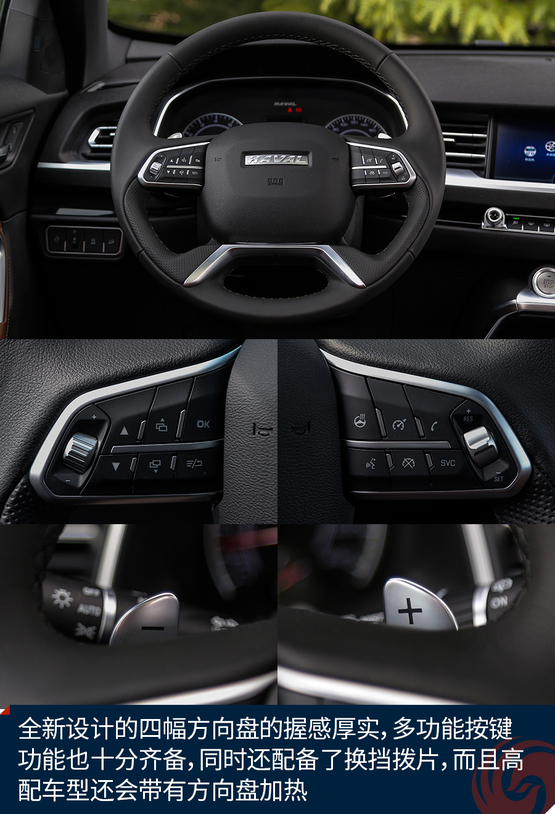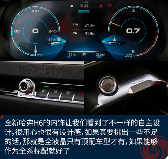 一切以駕駛員為中心的設計理念值得肯定,微微朝向駕駛員的中控設計,全新的電子換擋桿以及多媒體控制旋鈕都給我留下了很深的印象,當然了全景天窗進一步增加了車內(nèi)空間的開揚感,全新設計的四幅方向盤的握感厚實,多功能按鍵功能也十分齊備。總之,全新哈弗H6的內(nèi)飾讓我們看到了不一樣的自主設計,很用心也很有設計感,沒有了雜亂無章,相反,這樣的設計會讓人很愿意和汽車獨處,如果真要挑出一些不足的話,那就是全液晶只有頂配車型才有,如果能夠作為全系標配就好了。