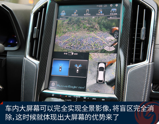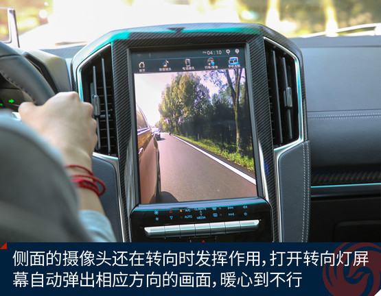新車的內(nèi)飾與老款相同,采用了環(huán)抱式太空艙的概念,方向盤,儀表盤等造型幾乎沒有變化,而最大的變化集中在中控屏及周邊區(qū)域,12英寸的大屏集成了多媒體系統(tǒng)與智能交互系統(tǒng),行駛過程中大屏幕還可以展示Eagle View+環(huán)景影像系統(tǒng)和Side view+車側(cè)安全影像輔助系統(tǒng)。