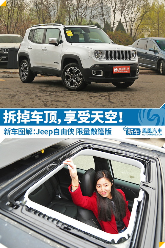 ?在買車前,你往往會有這些尷尬的情況,就是有個性的車買不起,買得起的長得太平常,長得不平常的家里人覺得太不實際,滿足實際需要的你自己不喜歡,買自己喜歡的車型往往是些不著邊際的車,挑一款樣子、實用而且全家都滿意的車怎么就那么費勁?當你最后不得不抓鬮,讓上帝幫你隨緣去決定買哪款車時,不妨輕輕的瞄一眼Jeep目前最小的SUV車型-自由俠,這款集合Jeep車型最多經(jīng)典素的車型足夠拉風,配以相當專業(yè)的四驅系統(tǒng)能讓它的實用性猛漲,而且最重要的是最近上市了2017款的自由俠車型推出了敞篷版車型,說白了它有一個可拆卸的車頂,這樣的車是足夠拉風、足夠吸引人了吧?