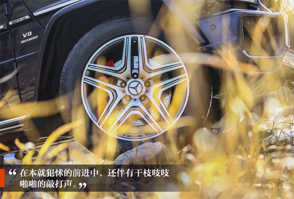 “路漫漫其修遠兮,吾將上下而求索”,在探尋真知的路上,G-Class總充當大哥的角色。一行兩車的小分隊中,G 63 AMG一次次走在前面,涉水中它試探深淺,觸摸池低的松軟;攀峰中它碾壓碎石,丈量與懸崖的邊距。說實話,在將近人高的干草叢中向上行走時,看不見道路盡頭,看不見周遭參照,在本就犯怵的前進中還伴有干枝吱吱啪啪的敲打聲,這一點點的疊加讓人不由心生膽怯,要不是有G-Class的帶領,恐怕早就無終而返。