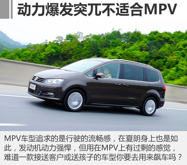總的開說,夏朗6座與7座版本一樣是一款易駕的車型,不管是公司專職司機(jī)還是家庭的主婦媽媽,都能從容的駕駛它穿梭都市鄉(xiāng)村。唯一感覺略有生澀的就是過于分裂的輸出動力。前段綿軟后段用力過猛的動力輸出特性實在不適合用在一款宜商宜家的MPV車型上。所以買家大可以選擇1.4T或1.8T車型,而且性價比更高,只不過6座版本不提供。