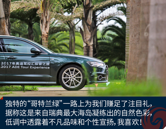 ????????我試駕的這臺車的顏色叫做“哥特蘭綠”,非常漂亮,據(jù)說是來自瑞典最大海島凝練出的自然色彩。拋開“靜謐超然、隱然于世”的官方說辭,你還不用擔心被準備結(jié)婚的親戚朋友的借車電話騷擾。我這幾天駕駛這臺車實際感受是:這樣一款風格突出的奧迪旅行車收獲別人或驚詫、或羨慕的目光的能力,遠遠超過十輛黑色A6L組成的車隊。