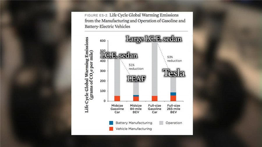 ????????但是如果算上在使用過程中產(chǎn)生的排放,在完整的使用周期中,電動(dòng)車產(chǎn)生的總排放比內(nèi)燃機(jī)汽車就少了一半左右。