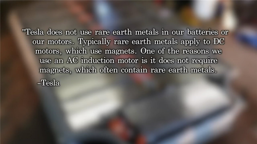 ????????視頻最后還討論了關(guān)于電動(dòng)車中使用到的稀土資源,以及電池的后期回收問題。特斯拉使用了交流感應(yīng)電機(jī)而非直流電機(jī)的原因就是為了少使用稀有的稀土。
