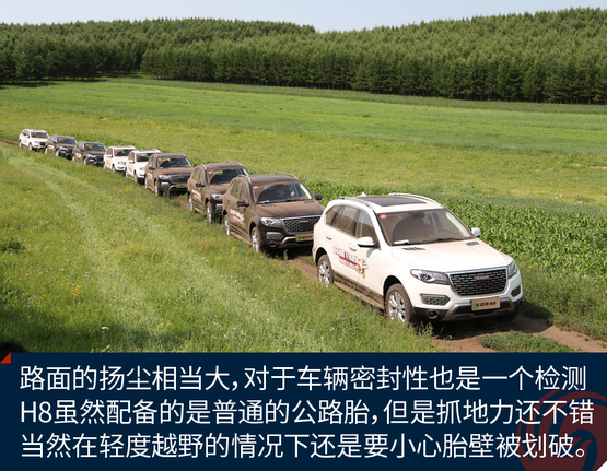 ????????經(jīng)過(guò)一段輕度的草原穿越,這段路程主要是體驗(yàn)H8的通過(guò)性和濾震性能,好戲才剛剛開(kāi)始,通過(guò)這段路程我已經(jīng)感受出了H8偏向城市型SUV的調(diào)教,底盤(pán)很穩(wěn)健,但是懸掛比較硬朗。