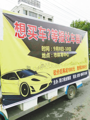 ????為了利用最有效的宣傳途徑進行造勢,經(jīng)過多方醞釀和謀劃,近階段,周口報業(yè)傳媒集團主要采取了以下主要方式進行宣傳推介:一是在《周口日報》《周口晚報》每周刊登3期以上自宣廣告,不惜版面進行大力宣傳;二是自7月30日開始,通過中華龍都網(wǎng)進行網(wǎng)上造勢;三是在周西路口、中州大道過街口、大慶路與建設大道交叉口、八一大道與建設大道交叉口、五一廣場等處設置了6塊醒目的戶外宣傳大牌;四是在周項路、周淮路、周西路口設置了大型墻體廣告;五是自8月8日開始,在廣播電臺開播為期一個月的車展廣告;六是在市區(qū)100多輛公交車的后彩屏進行不間斷滾動宣傳;七是在市區(qū)70多個小區(qū)門口平等門及燈箱上布設了宣傳廣告;八是自8月12日開始,出動多輛流動宣傳車在市區(qū)主要街道進行巡回宣傳。