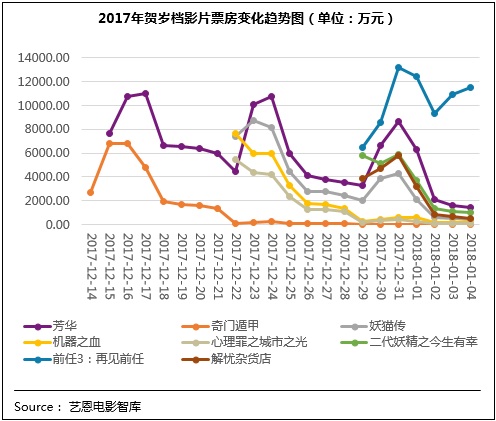 于12月29日上映的國(guó)產(chǎn)喜劇IP“前任系列”的第三部作品《前任3:再見(jiàn)前任》整體表現(xiàn)也較優(yōu)異,影片用接地氣的風(fēng)格闡釋愛(ài)情與成長(zhǎng)的主題,讓人捧腹又直戳人心,滿意度80.7分居檔期第二位;在良好口碑支撐下,影片票房也表現(xiàn)出了逆市上揚(yáng)的巨大潛力。