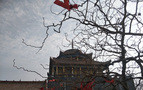 站在昆山女媧宮前向南看,一座高大宏偉的建筑物映入記者眼簾,由于它坐北朝南,我們只能看到它的背影。趙俊明告訴我們,那棟建筑物也是一座敬奉女媧娘娘的大殿,叫做媧皇圣宮寶殿。它是由一位女香客自發(fā)捐資修建的,這座氣派的大殿從無到有、從小到大整整用了14年時(shí)間,花費(fèi)近千萬元。