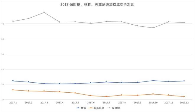 保時捷、林肯、英菲尼迪銷量在5-10萬之間為第三陣營,保時捷品牌比較節(jié)制,對銷量一直沒有過多追求,銷售方式與其他豪華品牌不同,多以訂單方式銷售,經(jīng)銷商利潤連續(xù)兩年行業(yè)中為最好;全進(jìn)口車型為主的林肯成交價在39萬上下,今年銷量增速最快,價格走勢也非常好,但產(chǎn)品進(jìn)入銷售中期,與其他品牌新款車型對比不占優(yōu)勢;英菲尼迪今年沒有太多走量新車,國產(chǎn)車型也面臨改款,成交價在30萬上下,隨新款QX50上市,Q50L改款,銷量和成交價有望走高。