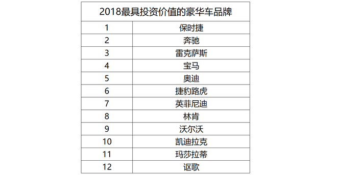 2018年經(jīng)銷商值得投入的品牌推薦保時捷、奔馳、雷克薩斯;具有增長潛力的品牌推薦寶馬、奧迪、捷豹路虎;謹(jǐn)慎關(guān)注的品牌有瑪莎拉蒂、謳歌。