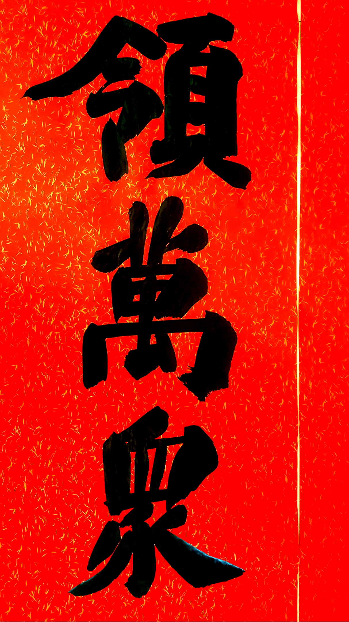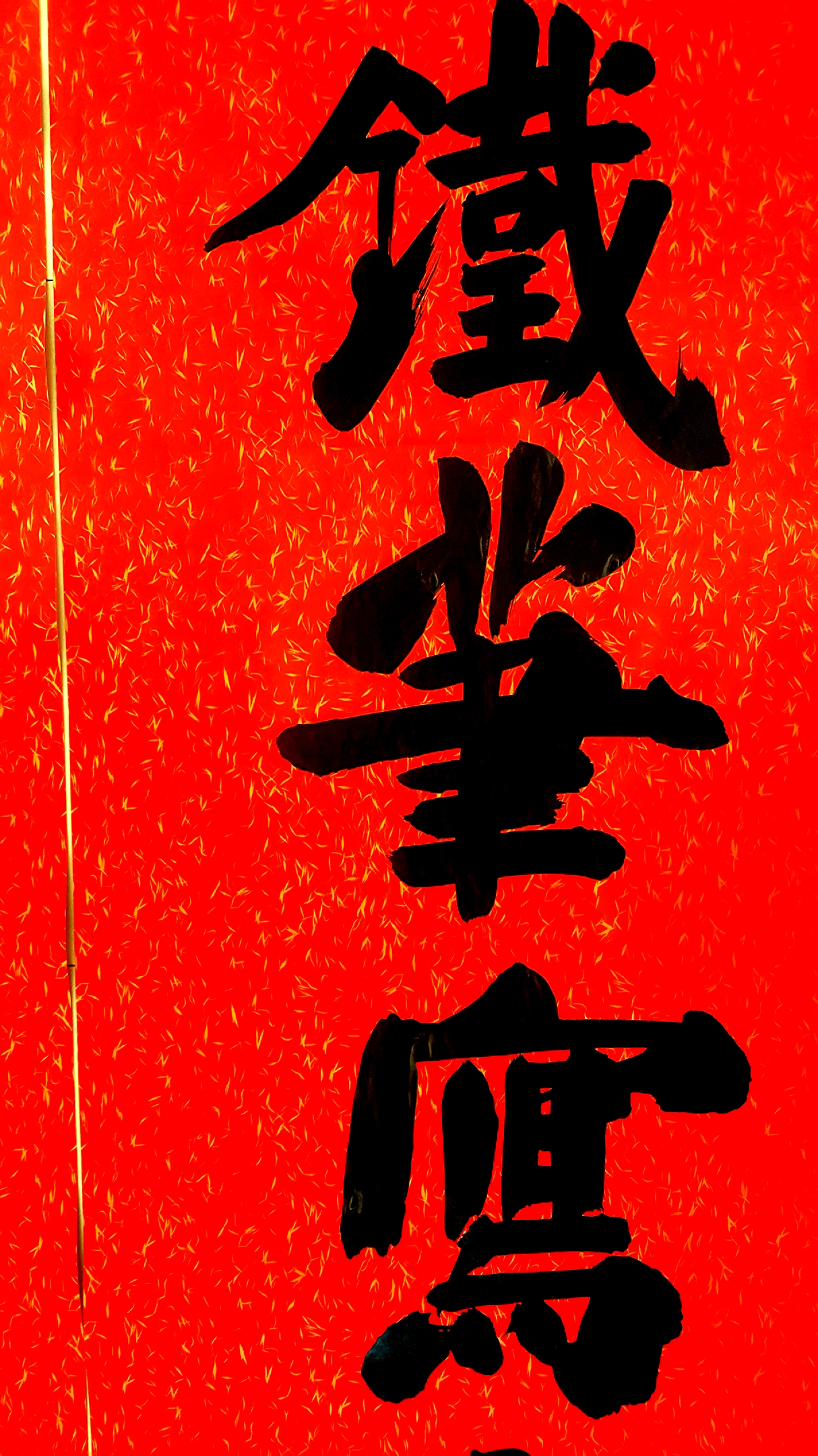 邢懷章以歐陽(yáng)通筆法融合魏碑,大楷榜書創(chuàng)作而成,春聯(lián)長(zhǎng)達(dá)5米,每字徑80公分左右,一氣呵成,不計(jì)工拙,近兩個(gè)小時(shí)完成兩幅巨型春聯(lián),表達(dá)了對(duì)周口報(bào)業(yè)集團(tuán)的祝福,映出了喜慶的年味。