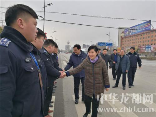 在鄲城縣城新華路與迎賓大道路口,羅文閣、李全林和一線值勤的環(huán)衛(wèi)工人、城管隊(duì)員一一握手,深切關(guān)心環(huán)衛(wèi)工人和城管隊(duì)員的冷暖?!翱词侄鄾觯┖顸c(diǎn)兒呀。大年三十了,你們放棄和家人團(tuán)圓吃餃子的機(jī)會(huì),在為我們的縣城保潔,我們城市的清潔有賴于你們。你們辛苦了,給你們拜個(gè)年,祝你們身體健康?!绷_文閣向環(huán)衛(wèi)工人遞上慰問(wèn)金時(shí),樸實(shí)的話語(yǔ)、殷殷的關(guān)懷把黨的溫暖涌向環(huán)衛(wèi)工人的心窩兒?!安恍量?,領(lǐng)導(dǎo)來(lái)看俺,俺里比吃餃子暖和?!杯h(huán)衛(wèi)工人邊鼓掌邊道出了內(nèi)心的激動(dòng)。