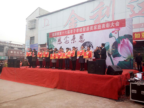 中華龍都網(wǎng)訊(周口報(bào)業(yè)全媒體記者 謝永靜)3月3日上午,扶溝縣韭園鎮(zhèn)黨委、政府大院旁的廣場(chǎng)上人潮涌地。從十里八村趕來的人們匯集于此,在欣賞完精彩紛呈的舞獅子、劃旱船和鑼鼓表演后,共同參加該鎮(zhèn)第十六屆“孝子孝媳”暨“最美家庭”表彰大會(huì),接受一次孝道教育和精神洗禮。副縣長胡東輝、縣委宣傳部副部長張根、縣文明辦主任高景衛(wèi)、韭園鎮(zhèn)黨委書記謝清泉、鎮(zhèn)長王朋云等參加大會(huì)。