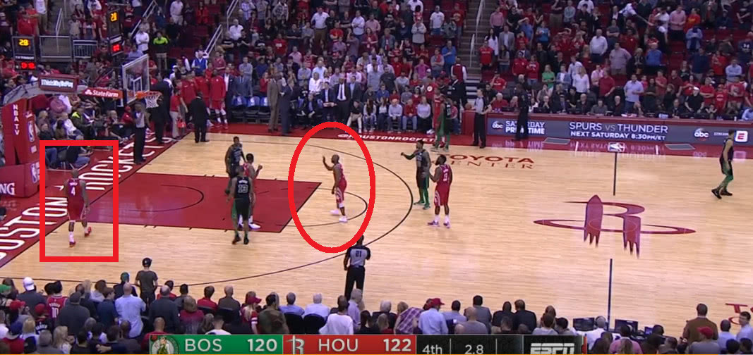 在比賽進(jìn)行到最后2.8秒的時(shí)候火箭只領(lǐng)先綠軍2分,這也就是說(shuō)什么事情都可能會(huì)發(fā)生。而在這個(gè)時(shí)候火箭發(fā)邊線球,就當(dāng)火箭要發(fā)球的時(shí)候我們從上圖可以看到有6名球員在場(chǎng)上,而這個(gè)時(shí)候大局觀智商高超的保羅一眼就看了出來(lái),他先是對(duì)著塔克大喊出去不過(guò)這時(shí)的塔克依舊慢慢悠悠,而這時(shí)的保羅都已經(jīng)跳了起來(lái)怒吼塔克讓其趕快出去。不得不說(shuō)如果不是保羅這智商這大局觀一旦火箭發(fā)出球來(lái)那么無(wú)疑就是一個(gè)技術(shù)犯規(guī),那么最終火箭能不能取得勝利就真的不好說(shuō)了。