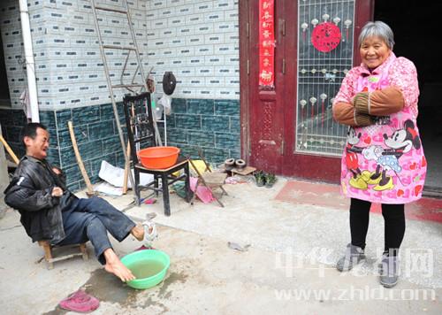 中華龍都網(wǎng)訊(周口報(bào)業(yè)全媒體記者 李瑞才 通訊員 胡洪濤文/圖)張紅印是鹿邑縣鳴鹿辦事處麻窩張村一名低保重度殘疾人,今年44歲,他一歲時(shí)患小兒麻痹癥導(dǎo)致四肢和大腦殘疾,雙臂萎縮、雙腿僵硬,走起路來?yè)u搖晃晃,只有兩只腳能用上,勉強(qiáng)趔趔趄趄走路?!斑@孩子起小得病,他是老大,我七個(gè)孩子,沒錢看病,小時(shí)候也沒少費(fèi)勁,到十歲才發(fā)現(xiàn)他想干些活,發(fā)現(xiàn)他會(huì)燒鍋。然后我就想他手不能用還有腳,我要教會(huì)他,我死后起碼他能自己生活?!眿寢尷钚绿m抹著淚說。