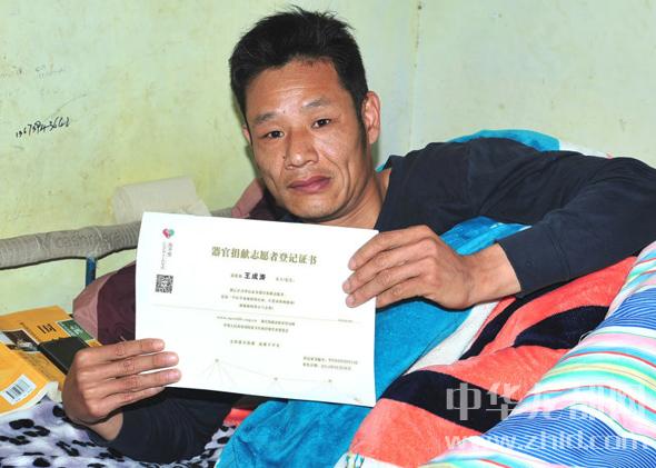 “我喜歡看書(shū),這些書(shū)我不知看了多少遍,村里的伙伴給我買(mǎi)書(shū)、借書(shū)。有時(shí)在網(wǎng)上讀書(shū)……”記者在現(xiàn)場(chǎng)看到,在王成濤的房間里,除一臺(tái)電腦外,還有幾本勵(lì)志的書(shū),其中有世界名著《鋼鐵是這樣練成的》,王成濤說(shuō),近20年里,他飽受身體上的病痛,但他始終保持著良好的心態(tài),堅(jiān)強(qiáng)地活著。2014年,他背著家里人在網(wǎng)上填寫(xiě)了《人體器官捐獻(xiàn)登記表》,完成器官和遺體捐獻(xiàn)志愿者的網(wǎng)上登記手續(xù),今年,他接觸到鹿邑縣紅字會(huì)志愿者協(xié)會(huì)的劉傳保、張玉勤等人,在他們的幫助和見(jiàn)證下,他于近日順利簽下申請(qǐng)捐獻(xiàn)遺體志愿者書(shū)。