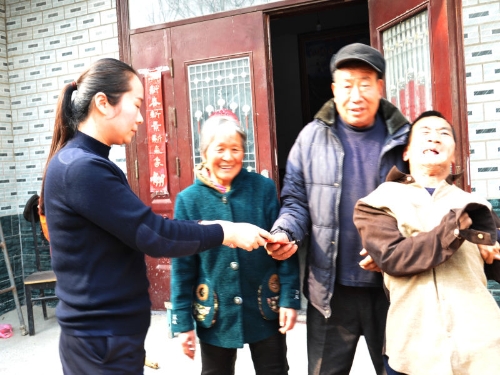 中華龍都網(wǎng)訊(周口報業(yè)全媒體記者 李瑞才 通訊員 胡洪濤 文圖)3月24日,鹿邑縣志愿者田小曼、羅曉光、韋坤三人一行到該縣鳴鹿辦事麻窩村慰問殘疾人張紅印和他的“愛心媽媽”,送去慰問金1000元和生活用品。