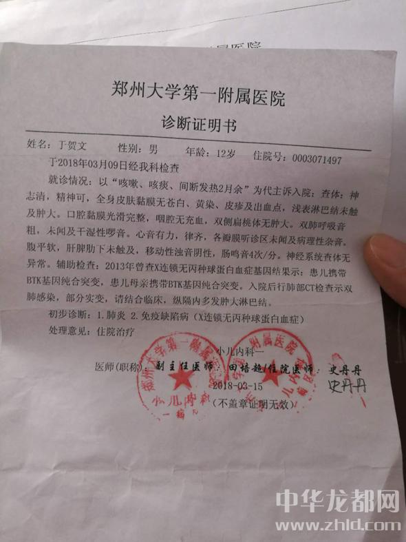 “肺炎、免疫缺陷?。╔連鎖無丙種球蛋白血癥)”,2018年3月15日,來自鄭大一附院的一張化驗單讓于東兩口子徹底崩潰了。于東說,拉拉扯扯求醫(yī)四五年,有時候檢測結(jié)果證明是孩子先天性免疫力低下,疑似造血功能不完善,但他不敢相信。由于家庭貧困,他們四處借債在縣、鄉(xiāng)、村三級醫(yī)院救治。