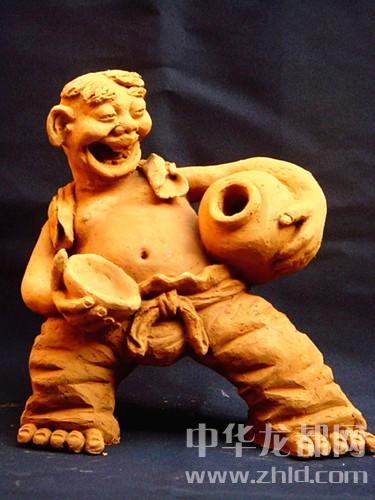 張振福作品中的人物都有一個共同的特點,那就是快樂。他的作品不論男女、不論年齡,張大嘴巴、開懷大笑是人物的共同特征,這也代表他對生活的理解和審美追求。張振福這種放棄追求形似,不是一味地追求逼真,而是追求神似。呈現(xiàn)在收藏者面前的一個個活潑有趣、氣韻生動、形神兼?zhèn)涞娜宋?,還有一個質(zhì)樸、純凈、快樂的心靈世界和精神世界,這些恰恰是每一個人都心馳神往的“農(nóng)家樂”。