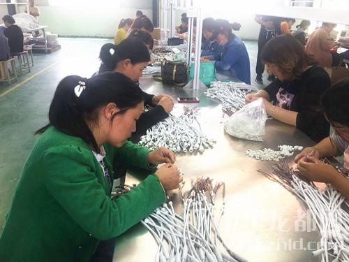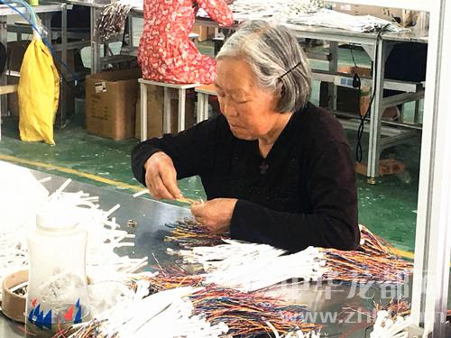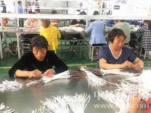 中華龍都網訊(周口報業(yè)全媒體記者 王泉林)沈丘縣石槽集鄉(xiāng)劉腰莊扶貧車間內,工人正在有條不紊地工作。沈丘縣大力推進優(yōu)勢產業(yè)、龍頭企業(yè)參與產業(yè)扶貧,由政府建設扶貧車間,企業(yè)租用車間開展產業(yè)扶貧,收入歸村集體經濟,用于發(fā)展村級事業(yè)和扶貧。扶貧車間吸納附近貧困戶和村民前來就業(yè),僅凱旺電子科技有限公司一家企業(yè)就經營扶貧車間27個,吸納貧困群眾360多個。