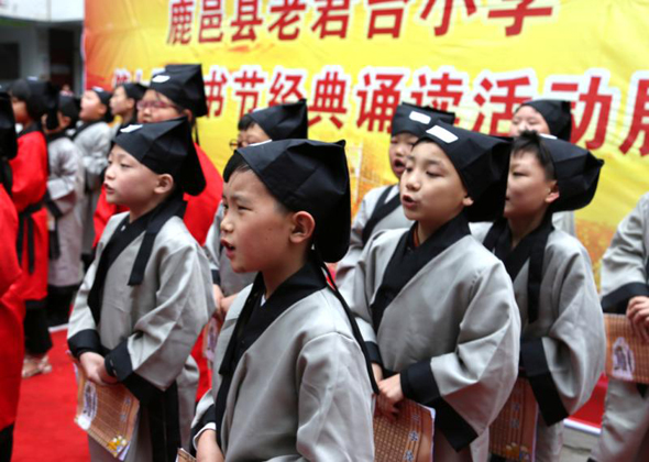 中華龍都網(wǎng)訊(周口報(bào)業(yè)全媒體記者 李瑞才 通訊員 孫廣合 胡洪濤 文/圖)5月21日,鹿邑縣老君臺小學(xué)舉辦“圣賢儒雅 經(jīng)典誦讀”為主題的第七屆讀書節(jié)誦讀展演活動(dòng),全校1000多名師生及家長參加誦讀展演活動(dòng)。