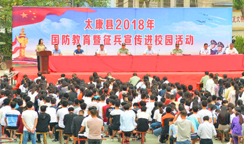 中華龍都網(wǎng)訊(周口報業(yè)全媒體記者 馬治衛(wèi) 通訊員 許皓)5月29日,太康縣2018年國防教育暨征兵宣傳進校園活動啟動儀式在該縣第二高級中學(xué)舉行。太康縣委常委、常務(wù)副縣長張保華,縣人武部部長于永前等領(lǐng)導(dǎo)出席啟動儀式。
