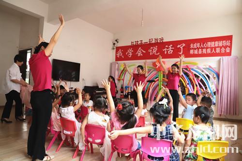 家長如此開朗,孩子們的世界肯定會更加陽光。記者隨著鄲城縣殘聯(lián)理事長楊瑞林和聾兒語訓(xùn)中心主任邵莉娜來到了二樓聾兒語訓(xùn)學(xué)習(xí)班?!拔覍W(xué)會說話了”,大愛至簡,教學(xué)班里僅此一句標(biāo)語,墻上是一面鏡子,鏡子上貼滿了老師和孩子們一起做的彩氣球,旁邊是一架鋼琴,4位語訓(xùn)老師正在張著大口(說話標(biāo)準(zhǔn)口形)、動作夸張地給孩子上聽力課,老師邊彈琴,邊做手指舞、跳少兒舞,孩子們慢慢聽、慢慢模仿、慢慢張口咿呀跟著唱……