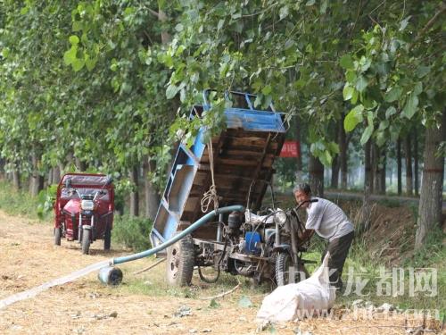 中華龍都網(wǎng)訊(周口報(bào)業(yè)全媒體記者 李瑞才 通訊員 胡洪濤 孫廣合)6月17日,鹿邑縣鄭集鄉(xiāng)曹牌村農(nóng)民曹昌文在抗旱澆地。 自6月初進(jìn)入“三夏生產(chǎn)”以來,連續(xù)高溫?zé)o有效降水,全縣受旱面積達(dá)到50多萬畝,為應(yīng)對(duì)持續(xù)發(fā)展的旱情,鹿邑縣緊急召開抗旱保秋工作推進(jìn)會(huì),安排部署全縣上下集中力量投入抗旱,爭取用10天左右的時(shí)間把全縣50多萬畝秋作物澆灌一遍。和鄭集鄉(xiāng)一樣,目前,鹿邑全縣農(nóng)村已迅速掀起抗旱保苗高潮。