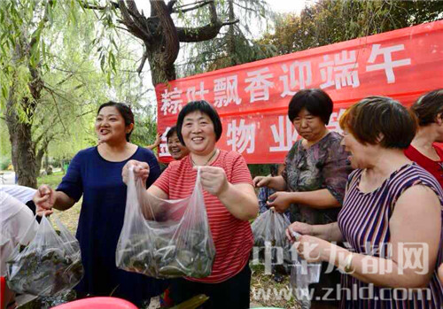 在一片歡聲笑語中,包好的400多個(gè)粽子被分發(fā)給小區(qū)的老人,為他們送去一份節(jié)日的問候。