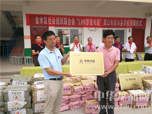 中華龍都網(wǎng)訊(周口報(bào)業(yè)全媒體記者 謝永靜)如火的驕陽點(diǎn)亮愛的夢想。6月28日上午,鄭州市金水區(qū)社會(huì)組織聯(lián)合會(huì)及8家會(huì)員單位“LHK夢想書屋”扶溝縣捐贈(zèng)儀式在扶亭街道高樓小學(xué)隆重舉行。他們?yōu)榉鰷峡h6所農(nóng)村學(xué)校送來1.2萬冊(cè)圖書、10臺(tái)教學(xué)影像設(shè)備和180套學(xué)習(xí)用品,總價(jià)值30多萬元。