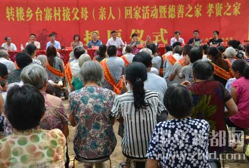 中華龍都網(wǎng)訊(周口報(bào)業(yè)全媒體記者 馬治衛(wèi) 通訊員 徐偉)太康縣轉(zhuǎn)樓鄉(xiāng)臺(tái)寨村接父母(親人)回家活動(dòng)暨德善之家孝賢之家授匾儀式于7月6日在臺(tái)寨村村北小樹林舉行。