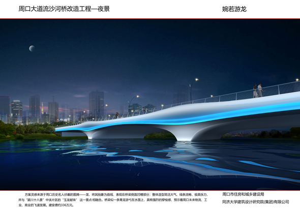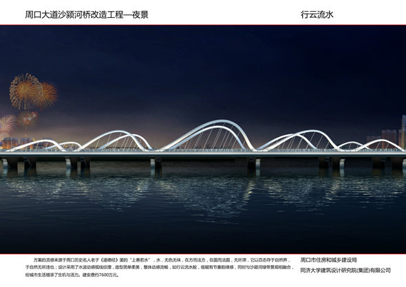 今后一個時期,結(jié)合水系的綜合治理,我市還將陸續(xù)開工建設(shè)數(shù)十座橋梁,并且秉承一橋一風(fēng)格的設(shè)計特色,展示出每座橋梁的文化內(nèi)涵,通過幾年的努力,把周口中心城區(qū)打造成百座橋梁薈萃、風(fēng)格各異、特色鮮明的橋梁博物館。