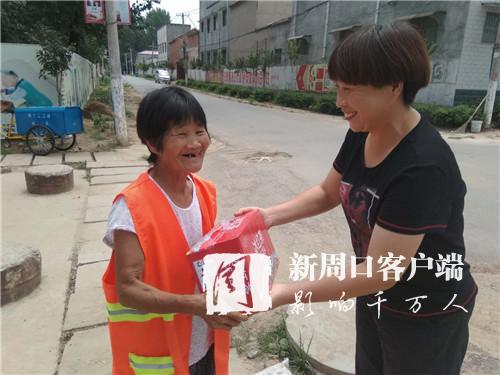 上午10時許,欣中基清潔公司經(jīng)理張志宏來到邵寨行政村??吹铰访娓筛蓛魞?,她很高興。除了例行巡視,張志宏此行還有一項任務(wù):向每位保潔員發(fā)放一件飲料。“天氣持續(xù)高溫,保潔員們露天辛勤勞動,給村民們創(chuàng)造了良好的生活環(huán)境。因此,公司決定開展慰問活動?!苯舆^飲料,邵天錄等6名保潔員滿臉笑容地連聲道謝。