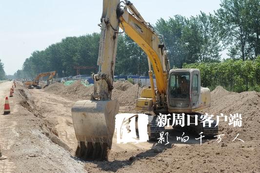 當(dāng)日9時許,記者來到施工現(xiàn)場,感受到的不僅是天氣的炎熱,更感受到了工人們爭分奪秒趕進度的熱情以及施工現(xiàn)場緊鑼密鼓推項目的熱潮。施工現(xiàn)場19臺挖掘機、5臺壓路機,2臺灰土拌和機以及數(shù)臺渣土車、裝載機齊齊上陣,10臺灑水車在路面中間來回穿梭,整個現(xiàn)場機械轟鳴,緊張有序,呈現(xiàn)出一派熱火朝天的景象。