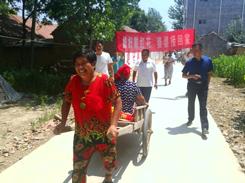 這不,老人的思想工作剛一做通。按照安排好的議程:老太太為三個(gè)兒媳婦戴上大紅花,三個(gè)兒媳婦主動(dòng)搬家,村干部舉著“媳婦戴紅花,婆婆接回家”的條幅,熱熱鬧鬧地把兩位老人接回了三兒子家居住。全村許多群眾前來(lái)圍觀、拍手叫好,為村里其他家族做了榜樣。