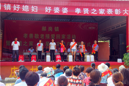 此次表彰大會(huì),郝崗鎮(zhèn)通過(guò)層層篩選,共評(píng)選出6名好婆婆,15名好媳婦,8戶孝賢之家,孝老敬老、接愛(ài)回家先進(jìn)人員24人,十星級(jí)文明戶582戶??h政協(xié)副主席、工商聯(lián)主席彭發(fā)光及鎮(zhèn)全體領(lǐng)導(dǎo)班子成員、干部職工、各個(gè)行政村“兩委”成員、各駐村工作隊(duì)、駐村第一書記及受表彰的“好婆婆、好媳婦、孝賢之家”400余人參加了會(huì)議。會(huì)議由鎮(zhèn)長(zhǎng)姚哲主持。