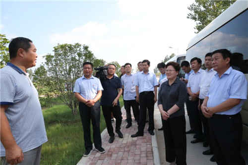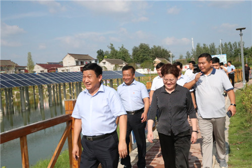 當(dāng)日下午,張穎波一行在太康縣縣長李錫勇,縣委副書記、縣政法委書記王程清等領(lǐng)導(dǎo)的陪同下,先后來到河南玉柏生物科技有限公司老冢鎮(zhèn)豆丹養(yǎng)殖基地、劉寨漁光互補(bǔ)基地、劉寨村委大院、劉寨文化大院、劉寨扶貧車間及構(gòu)樹產(chǎn)業(yè)扶貧基地等處考察。
