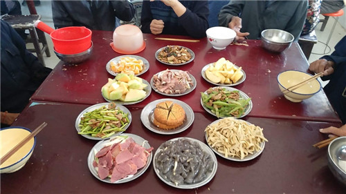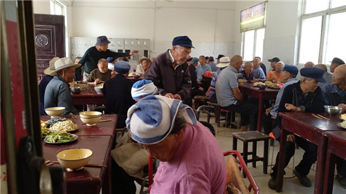 文藝節(jié)目之后,大家一同在敬老院食堂吃團(tuán)圓飯。老人們邊吃邊聊,臉上洋溢著開(kāi)心幸福的笑容。