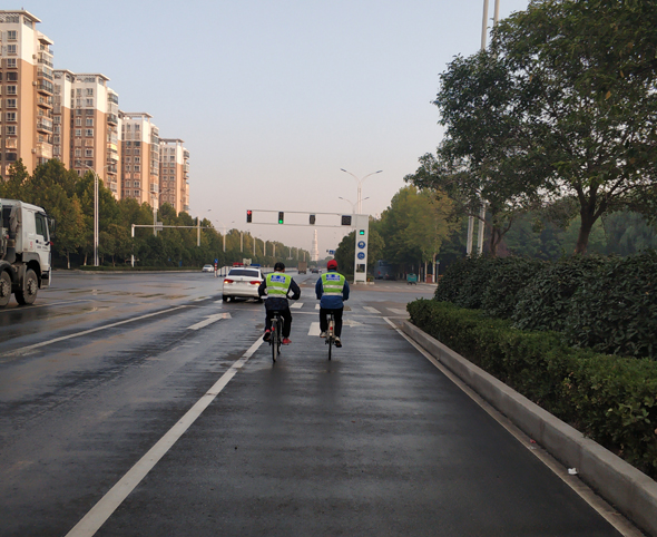 10月3日6時,國際級丈量員、吉林體育學(xué)院教授袁林受中國田徑協(xié)會委派,與周口馬拉松組委會工作人員一起,對周馬新調(diào)整的賽道進行精準(zhǔn)丈量。