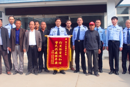 10月9日上午,李埠口鄉(xiāng)孫莊村數(shù)十名群眾代表,來到周口市公安局港區(qū)分局,將寫有“打黑除害促和諧,警民共建保平安”的錦旗和感謝信送到何學(xué)民政委的手中,村民代表對(duì)分局鐵腕鏟除該村“村霸”維護(hù)孫莊村和諧穩(wěn)定表示由衷的感謝。